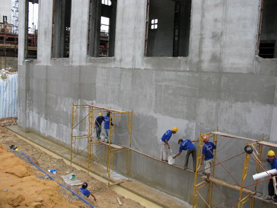 – Sau khi tường được xây gạch, ta chưa nên trát mà bắt đầu tiến hành chống thấm cho nhà của bạn. Quy trình chống thấm tường giáp lai, liền kề như sau: