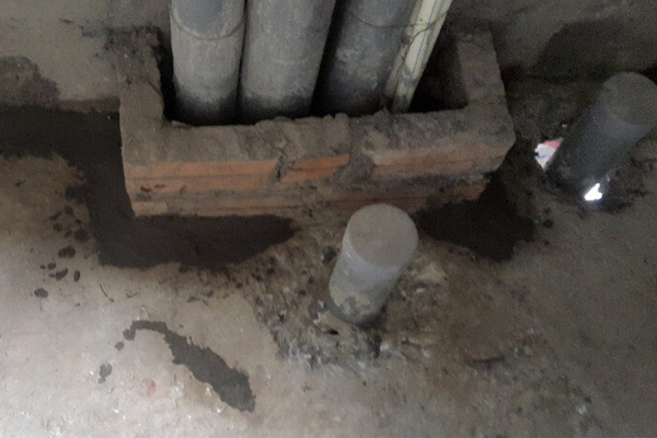 Bước 2: Đục tẩy miệng các cổ ống theo hình miệng loa. Rửa sạch miệng cổ ống bằng nước sạch. Sau đó chèn kín cổ ống.