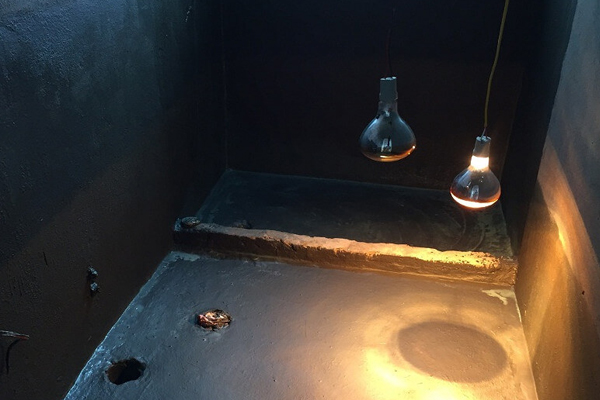 Bước 3: Trát bo dốc chân tường bao và sàn bê tông bằng vữa xi măng + cát.
