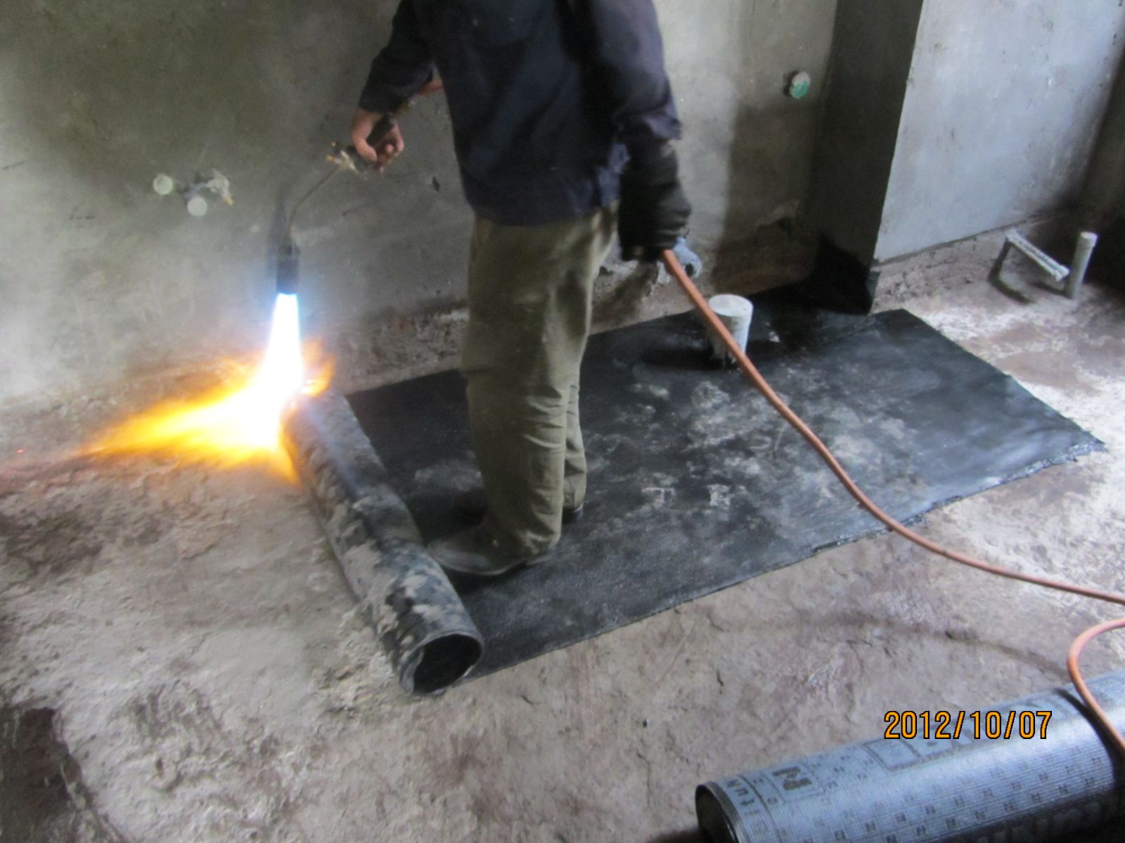 – Sau đó cuốn ngược lại nhưng không được làm thay đổi các hướng đã định rồi từ từ trải ra và bắt đầu làm nóng bề mặt bằng đèn khò dùng gas (đối với màng khò nóng). Đối với màng dán lạnh thì dán trực tiếp luôn.